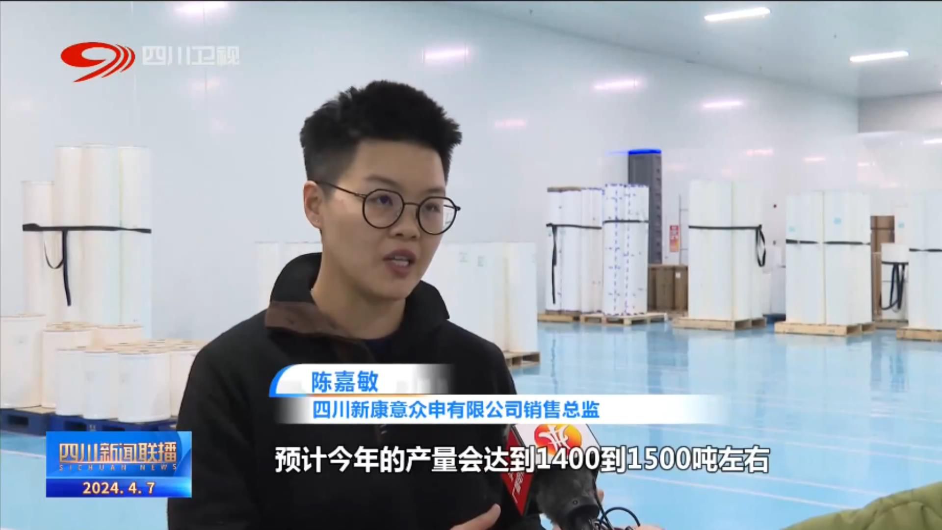 四川新康意众申有限公司销售总监 陈嘉敏:预计今年的产量会达到1400到1500吨左右,产值大概在1到2亿元,大部分是销往国外,国外比例大概占80%,未来我们继续开拓全球市场,出口量希望可以增到100%。