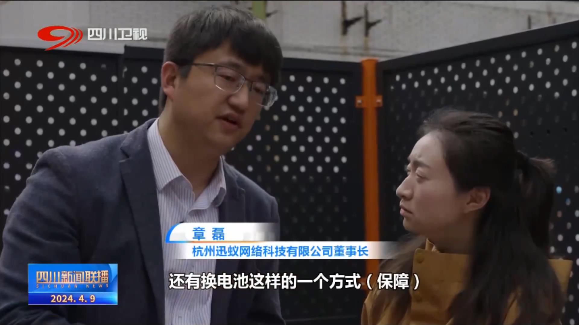 杭州迅蚁网络科技有限公司董事长 章磊:目前在城市内的它最大航程是15公里,单程,还有换电池这样的一个方式(保障)。然后它的安全(性)可以从这里看到,它后机这里我们有个降落伞,然后这是两个GPS,它是做导航的,卫星导航,以及这个旋翼,有6个旋翼,如果说有一个坏了以后,(与)它对称的那个就可以不断,然后也能保证平衡。
