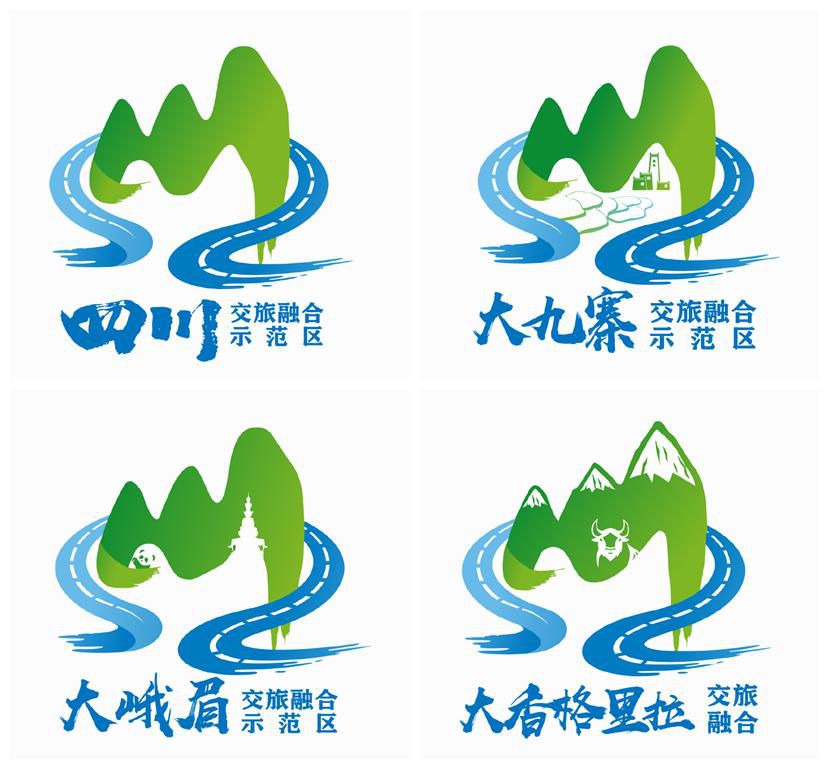 此外,在此总LOGO基础上,通过融入不同文旅品牌特色元素,衍生出“3”个交旅融合品牌LOGO。其中,大峨眉交旅融合示范区LOGO融入了峨眉山的金顶元素和世界第一只大熊猫发现地雅安的熊猫元素;大九寨交旅融合示范区LOGO融入了独特罕见的钙化池元素和历史悠久的民居建筑元素;大香格里拉交旅融合LOGO融入了巍峨神圣的雪山元素和雪域高原上常见的牦牛元素。(图片由四川省交通运输厅提供)