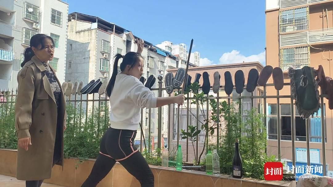 “网上的声音很多,鼓励的,质疑的,我都看到了。我很感激,大家都在为我们加油。”4月11日下午,四川南充市蓬安县,57岁的赵海英看着阳台上练习川剧吐火技能的“唐宝”女儿,一边为她数节拍,一边纠正女儿喷吐的方向:“幺女儿,你要分析风向,判断自己站的位置。”