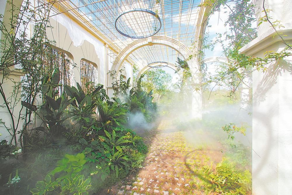 “上海人的生活方式讲究轻奢风,既要有低调、享受的感觉,同时又要花很小的代价来达成。”龚明口中的轻奢简约风,在上海展园有着不少的细节呈现。例如展园的“天井与藤萝”区域。在这小小的空间里,充分发挥了上海人“螺蛳壳里做道场”的精神,利用西式拱廊、斑驳的弹石路面组合成了一个狭小的上海里弄、天井空间的意象。