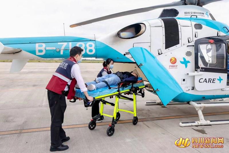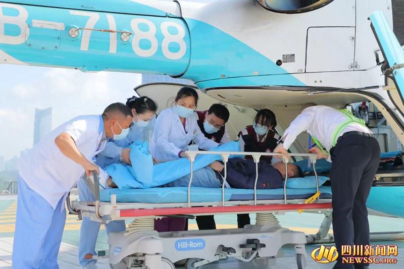 收到指令后,中航材航空救援迅速启动,派出救援直升机。同时,四川大学华西医院、华西天府医院立即响应,启动应急航空医疗队伍——华西医院应急办派出2名航空救援队队员跟随直升机赴现场急救;华西天府医院停机坪做好相应准备,急诊科医护人员在停机坪等待接应。