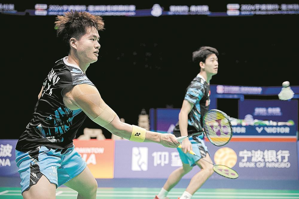 4月14日,在2024亚洲羽毛球锦标赛男子双打决赛中,中国组合梁伟铿/王昶夺得冠军 图据新华社
