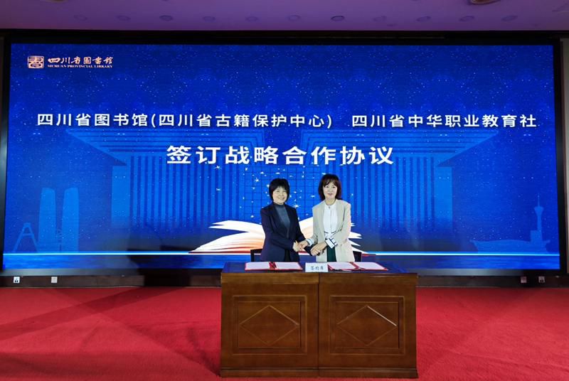 同时,为实现“优势互补、互惠互利、共同发展”的合作目标,四川省图书馆、四川省中华职业教育社现场签署《战略合作协议》,在“阅读推广、志愿服务、弘扬传统文化”等方面,展开全方位立体化合作,探索深度馆社联动,共同推动文化教育融合方面的创新和发展。