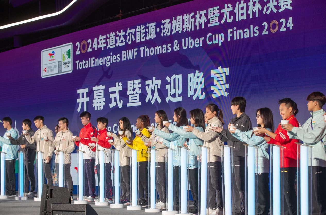 当晚,来自世界羽联、中国羽协和四川省、成都市及成都高新区的嘉宾及各参赛运动队代表欢聚一堂,共同见证新一届汤尤杯的“蓉耀”启幕。