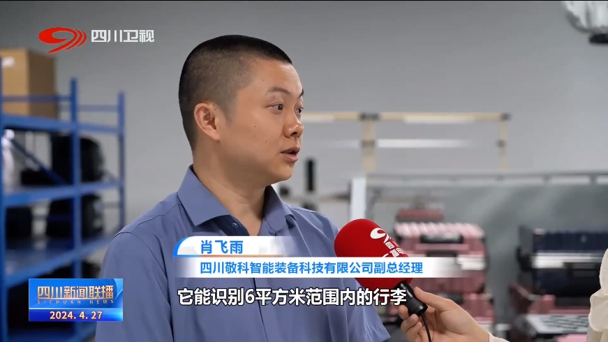 四川敬科智能装备科技有限公司副总经理 肖飞雨:它能识别6平方米范围内的行李,识别数量在40件左右,我们的识别时间小于2秒,人工识别以及反馈这些信息至少要3-5分钟,每小时可执行350到400件行李的抓取、搬运。