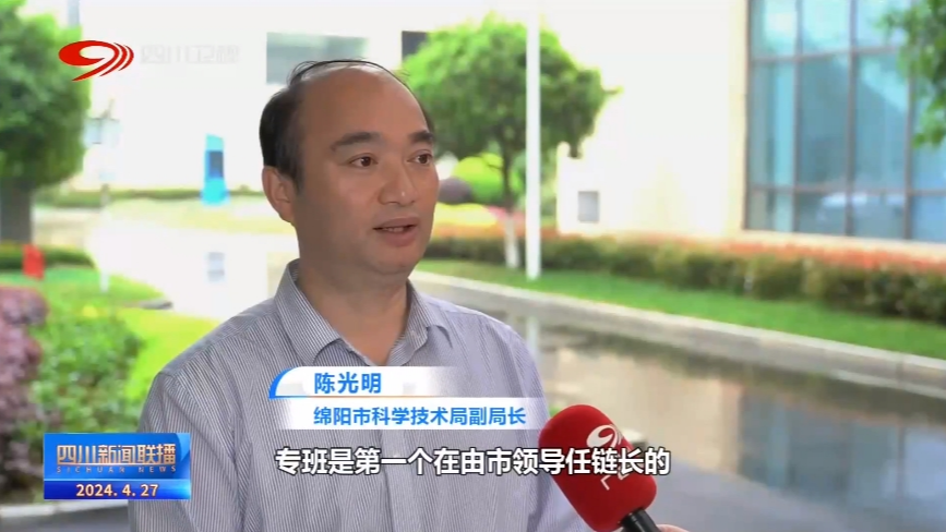 绵阳市科学技术局副局长 陈光明:专班是第一个在由市领导任链长的现代产业体系链长制基础上,调整优化形成的产业推动机制,专班集聚了有关部门产业重点承载区,还重点纳入了高校院所、龙头企业形成协同推动力量。