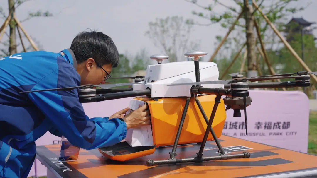 今年3月中旬,在2024彭州“熊猫蜀道山超级越野赛”中,翔彭智航也推出了空中快递。