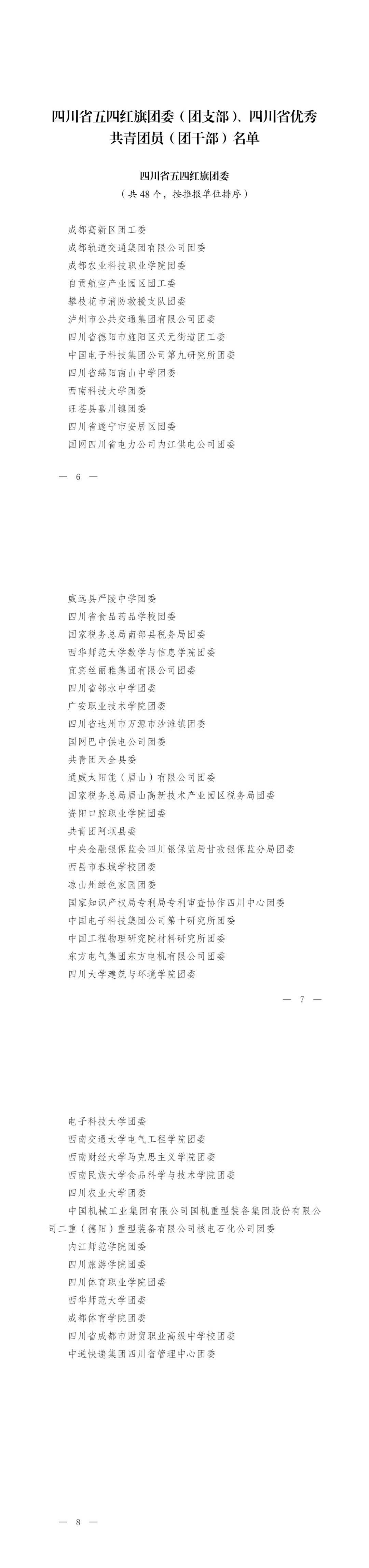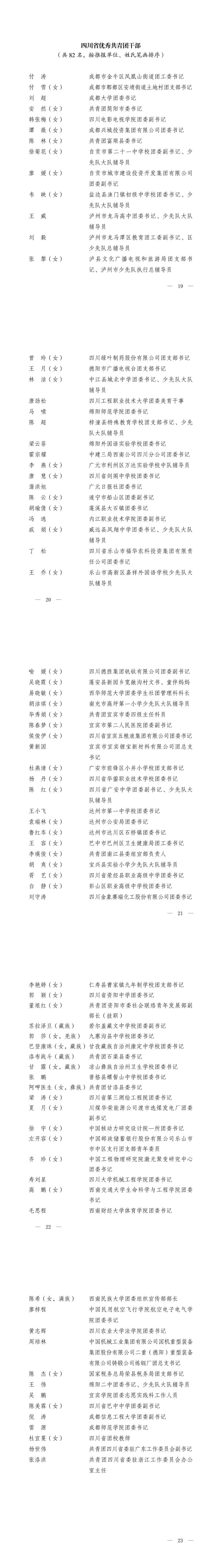 4月29日,记者从共青团四川省委获悉,五四青年节即将到来之际,为表彰先进、树立典型,共青团四川省委、四川省人力资源和社会保障厅决定,授予王成等20名个人第27届“四川青年五四奖章”,授予成都超算中心运营管理有限公司青年团队等10个集体第27届“四川青年五四奖章集体”,授予成都高新区团工委、成都市锦江区沙河街道汇泉路社区团支部等90个团组织四川省五四红旗团委(团支部)称号,授予王祥波、付涛等180名同志四川省优秀共青团员(团干部)称号。