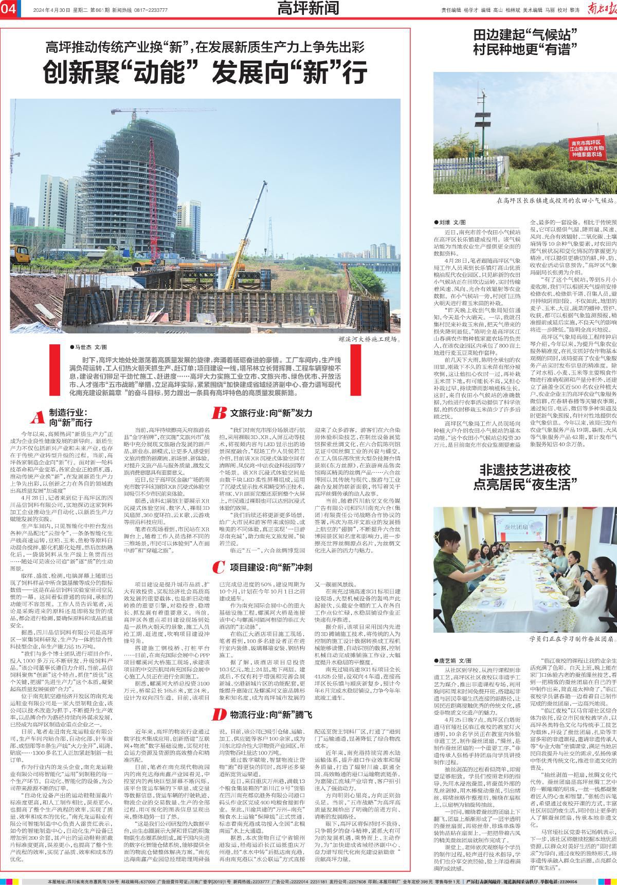 今年以来,高频热词“新质生产力”正成为企业良性健康发展的新导向。新质生产力不仅包括新兴产业和未来产业,也存在于传统产业转型升级的过程。当前,高坪各家制造企业向“新”行。面对新一轮科技革命和产业变革,各家企业正抢抓机遇,推动传统产业换“新”,在发展新质生产力上争先出彩,以创新之力在各自的领域跑出高质量发展“加速度”