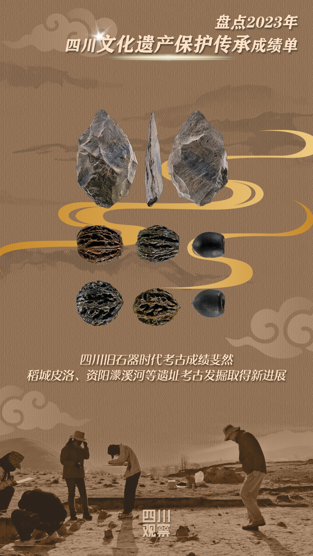 回望2023年,四川深入贯彻习近平文化思想,聚焦文化遗产保护传承,坚持保护第一、传承优先,在考古发掘、文物保护、历史研究、阐释传播等领域屡屡出新、出圈,将优秀传统文化融入百姓生活日常,让悠远深厚的巴蜀文化在新时代绵延繁盛、历久弥新。