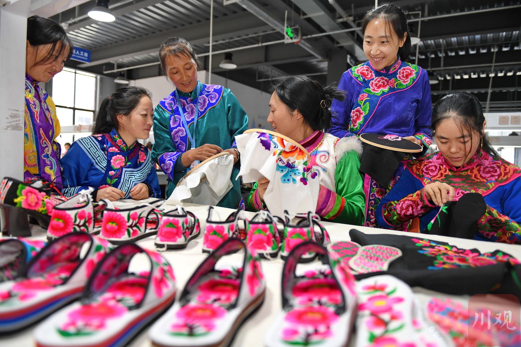 汶川县的羌族妇女参加免费羌绣手艺培训。李向雨 摄