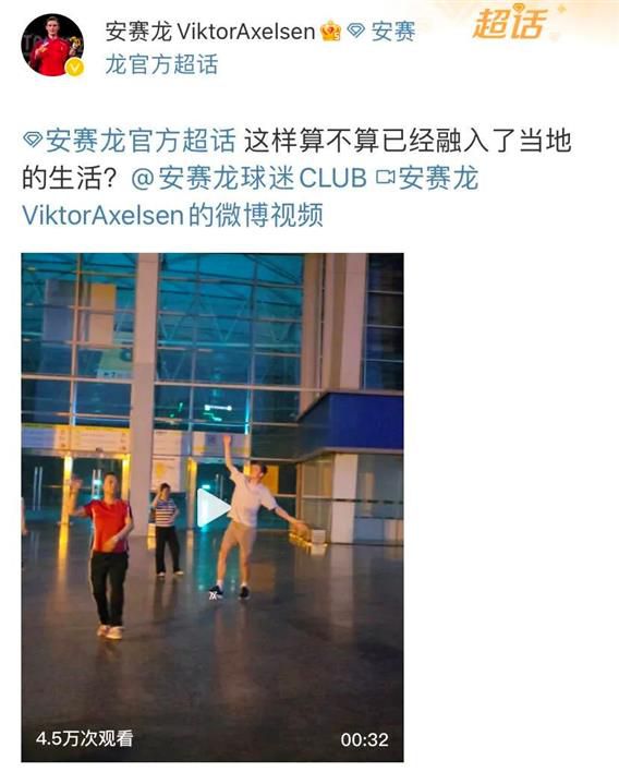 安赛龙在微博上晒出自己在成都街头跳广场舞的视频