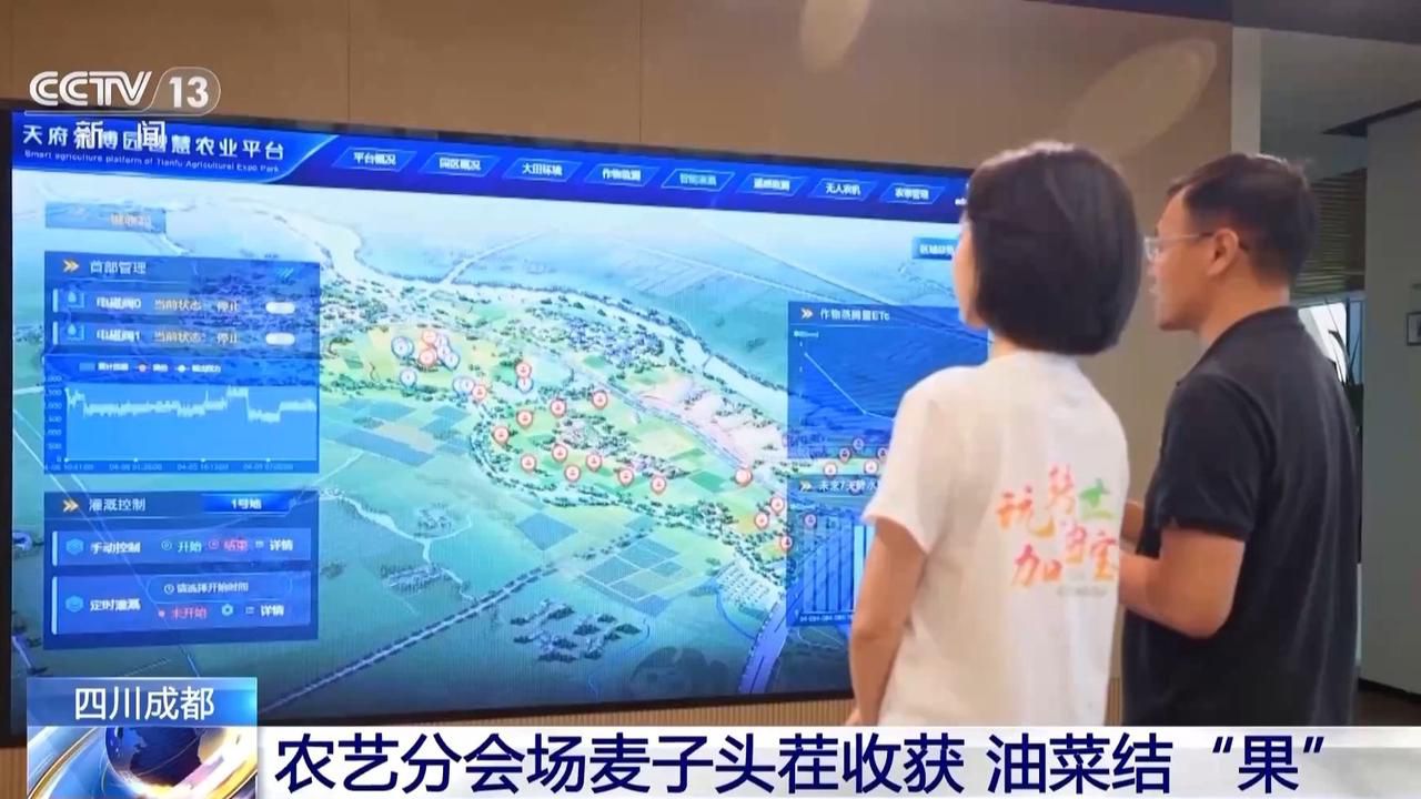 麦子满穗、油菜结果,世园会农艺分会场大地画卷传来收获的讯息,对于种粮农民来说,这是今年第一茬收获。但这里老乡们如今种地悠闲了很多,农博园里设立的“科技管家”,在大数据平台上24小时都在线。