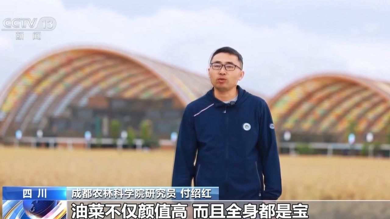 成都农林科学院研究员 付绍红:油菜不仅颜值高,而且全身都是宝。油菜可以耐盐碱,然后它的根系可以分泌有机酸,促进土壤的微生物生长、做绿肥。油菜薹可以食用,它含有膳食纤维,然后维生素以及锌、硒等微量元素。