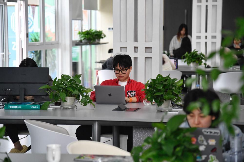 4月29日,人们在资阳国际数字游民社区内办公。新华社记者 刘坤 摄
