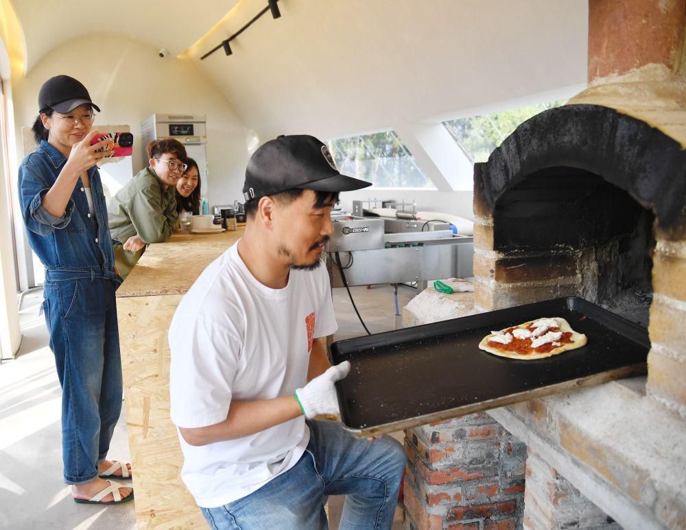 每天早上九点,来自韩国的秋浩真在位于仁里村山顶观景台的咖啡馆里开启新一天的忙碌。