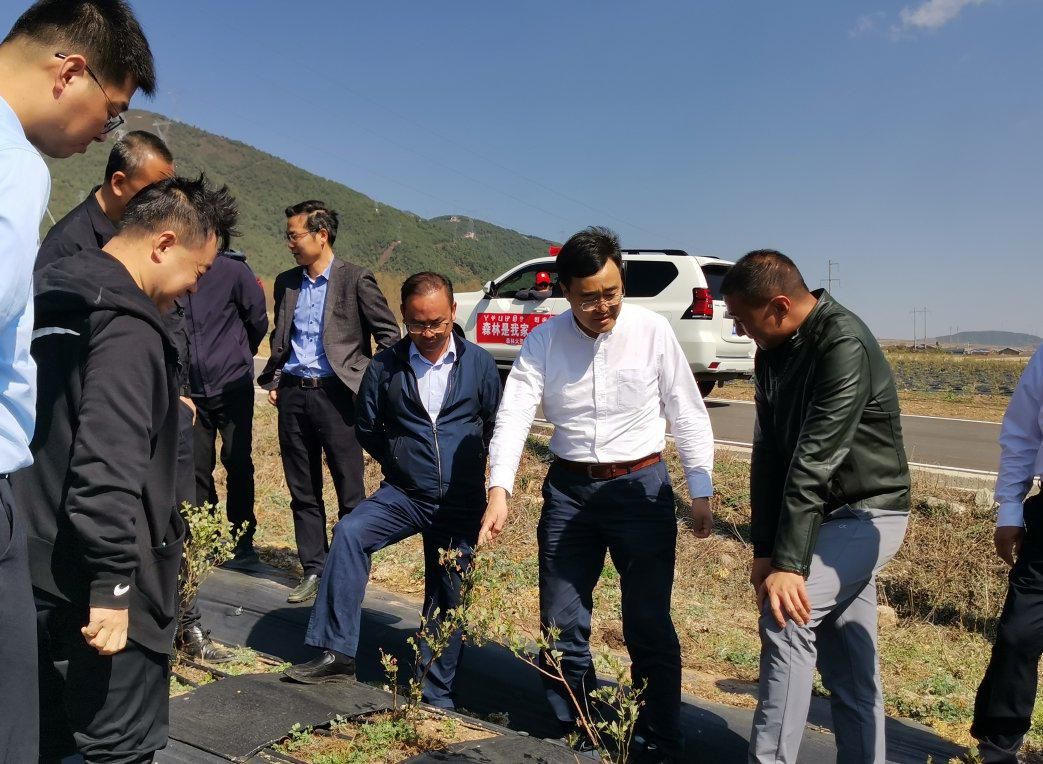 2022年3月25日,王峻(右二)在布拖县考察万亩蓝莓产业园。 浙江省驻川工作组供图