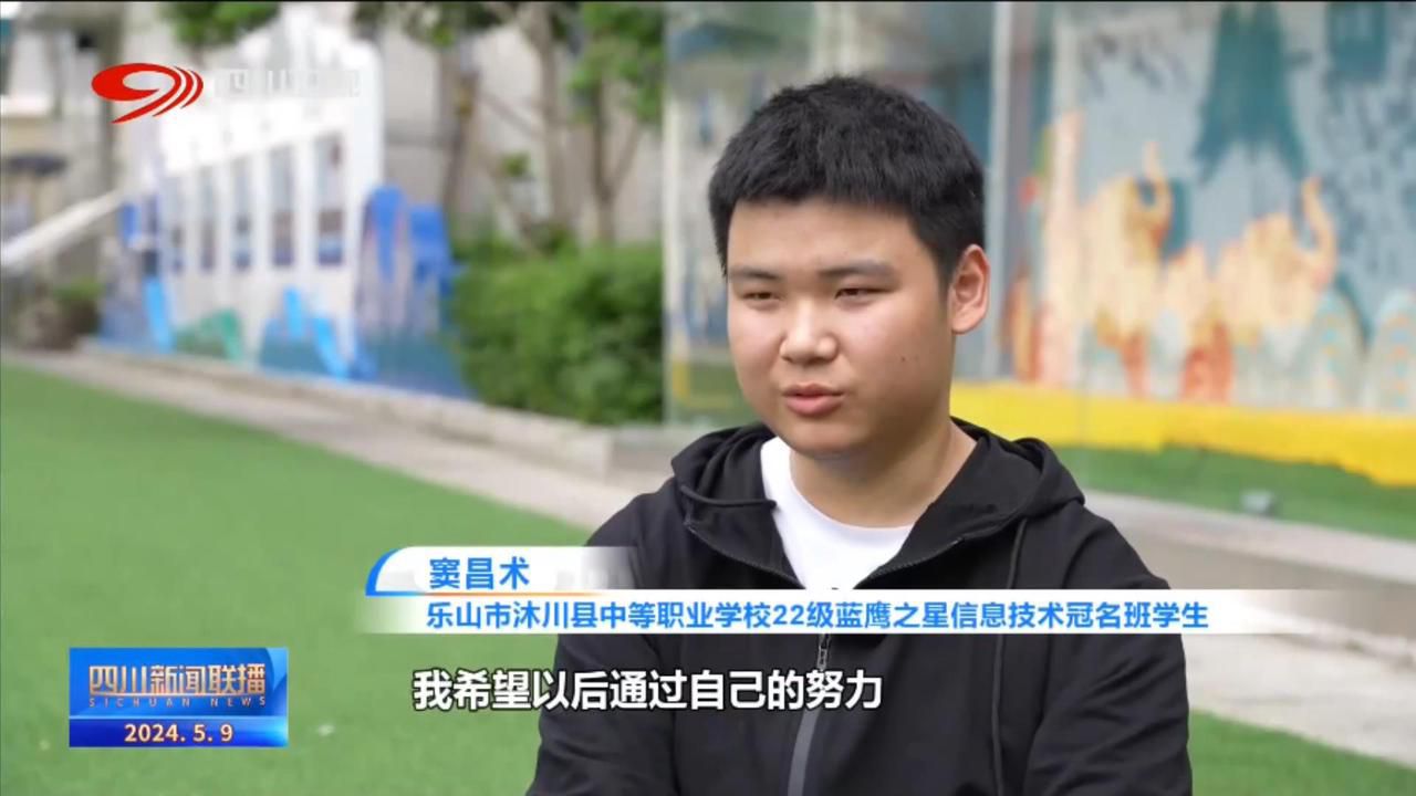 乐山市沐川县中等职业学校22级蓝鹰之星信息技术冠名班学生 窦昌术:我希望以后通过自己的努力,然后考上一所好的大学。学校方面是(让我)对我的费用不用多担心的,让我静下心来学习就行了。