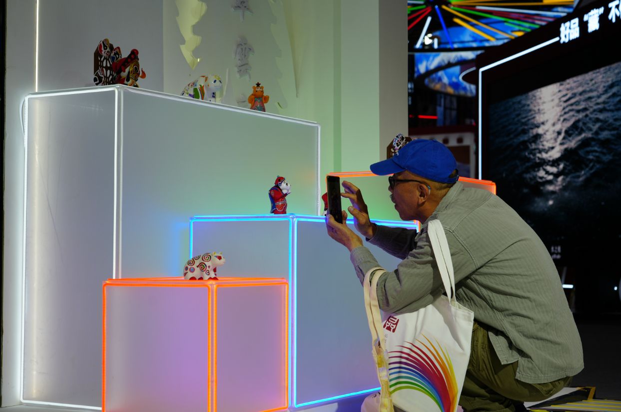 由39个储物格构成的巨大的“39”数字十分扯人眼球,当观众敲击按钮,“跑马灯”沿着格子快速转动,当随机停留在某一个格时,就可以对应领取藏于其内的特色产品。