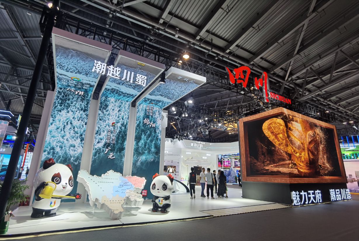 四川馆位于地方展区,252平方米的展位汇集了一百多个“四川造”精品。“四川馆侧重从产业、产品和品牌端,展现四川推动高质量发展取得的显著成效。”省发展改革委有关负责人介绍,四川馆分“潮越川蜀”“潮聚川智”“潮游川韵”“潮品川味”四大展区,全方位展示特色鲜明的天府城市形象品牌、产业集群品牌、旅游节庆品牌及区域公用品牌。
