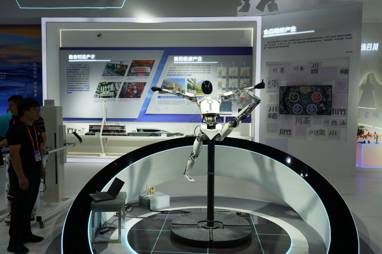 环顾四川馆内,电子信息产业、装备制造产业、食品轻纺产业、能源化工产业、先进材料产业、医药健康产业,四川六大特色优势产业样态如数呈现,硬科技与烟火气并存。