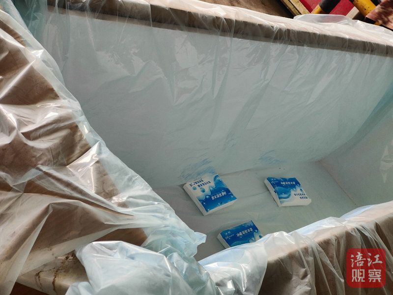 在5℃-6℃的气调保鲜库(冻库)内,水雾弥漫,寒气逼人,记者在现场看到,厂区工作人员将准备好的新鲜竹子打包。包装箱底,加了一层加厚塑料薄膜,打包时一层竹子一层冰。而海关检验人员则认真查验是否有烂叶、虫子等。