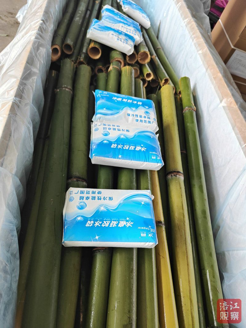 “为了保鲜,我们从大山深处采摘后,会经过两次降温才打包。第一次是竹子采回后,立即送到保鲜库降温。保持足够新鲜最适宜的温度是5℃-6℃,在降到合适的温度后,工作人员又将其从库里取出清洗,摘掉烂叶、黄叶,剔除病虫害竹子。然后再放入保鲜库,等待海关检验出口。”田启刚说。