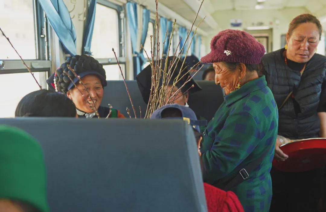 ▲乡亲们在“慢火车”上欢声交谈。图据中国铁路