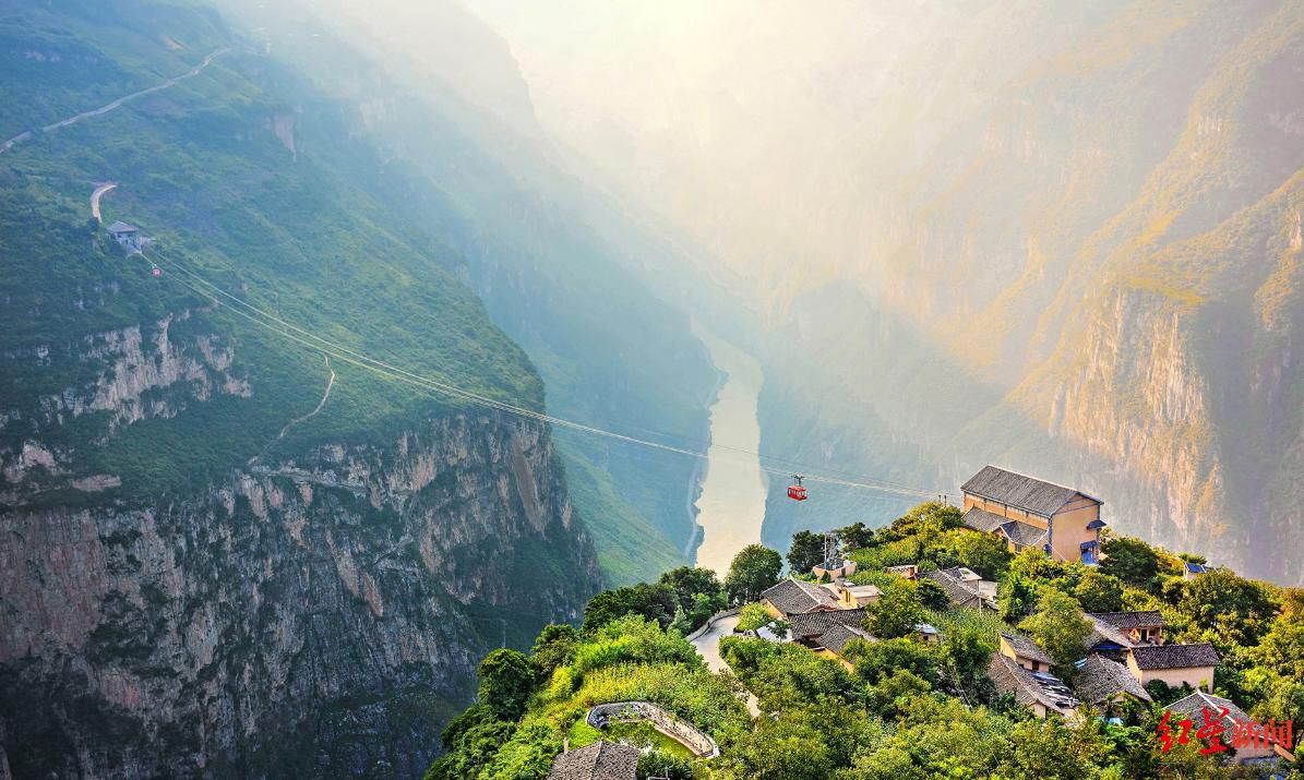 从峡谷底部到古路村,落差近千米,骡马道就挂在垂直的悬崖上。有网友把古路村称为四川人自己的虎跳峡,“不是虎跳峡去不起,而是古路村更有性价比!”一时间,“六大门派围攻光明顶都没这么多人”“我在山顶等你”成为网络流行语。