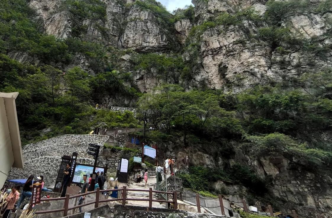 逼仄的大峡谷里是陡然的热闹,小吃摊前热气腾腾,游客服务中心门口正在售卖咖啡和冷饮,两个停车场远远不够,更多车辆沿着路边停放。从山上下来的游客,有感叹山险路陡的,也有轻松惬意的,他们在山脚短暂停留,然后匆匆返程。