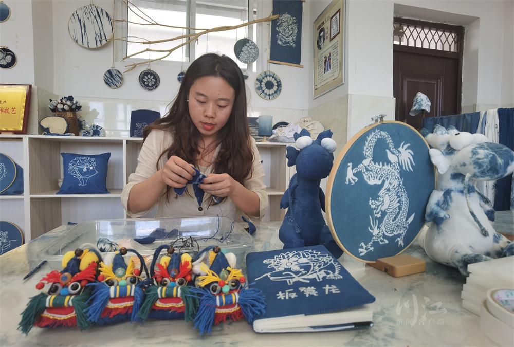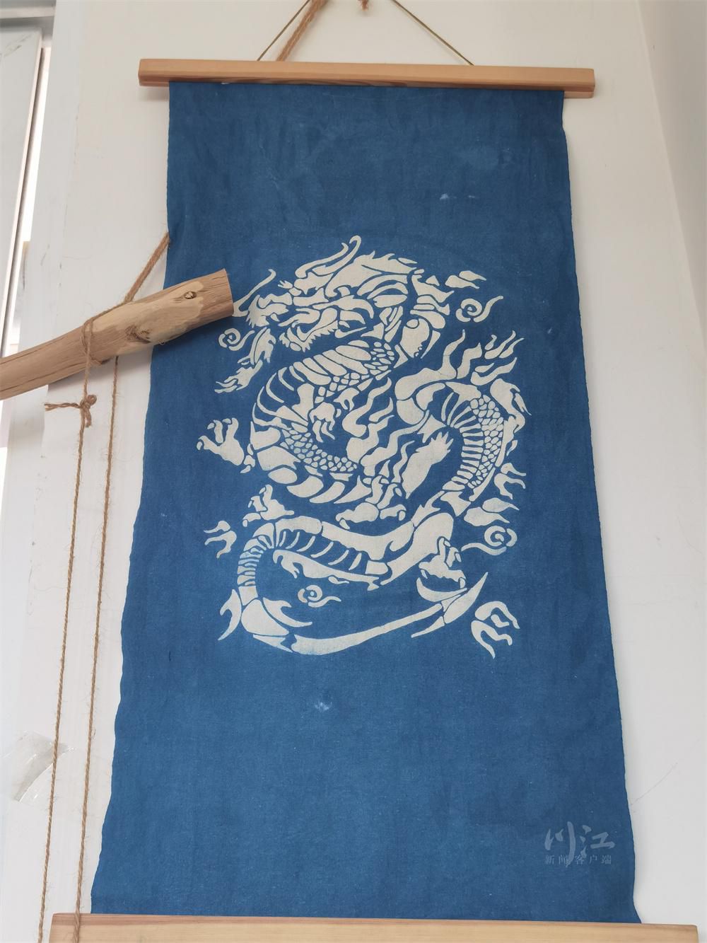 “今年是龙年,孩子们对龙的喜爱倍增。泸县是龙城,我们也以雨坛彩龙、龙脑桥等作为蓝本,制作了不少与龙有关的作品,送到泸县宋代石刻博物馆等地方进行展示。”余思思对本地扎染布有自己的看法,她认为泸州的染布工艺一开始其实并不花哨,以纯色为主,满足人们生活所需。