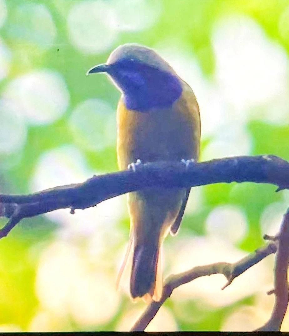 5月16日,记者从成都市自然保护地和野生动植物保护中心获悉,观鸟爱好者于近日在都江堰灵岩山发现一只蓝绿色小鸟停歇在树枝上并拍摄下了它的照片。经确认,这只美丽生灵是橙腹叶鹎华南亚种,此前从未在成都被发现。