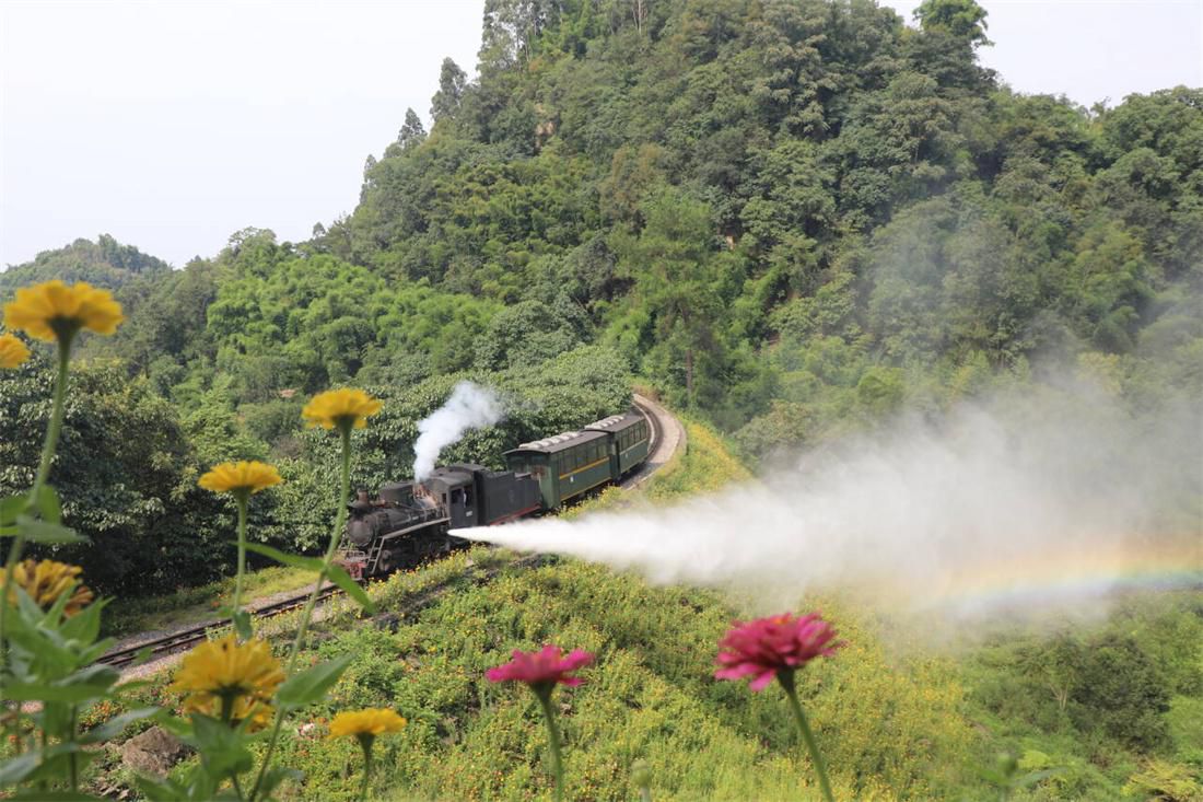 “呜呜呜……”随着一阵悠扬的汽笛声,犍为县芭沟镇的嘉阳小火车缓缓出发。伴着“哐当哐当”的慢节奏,游客们坐在晃晃悠悠的车厢中,沿途旖旎田园风光尽收眼底。
