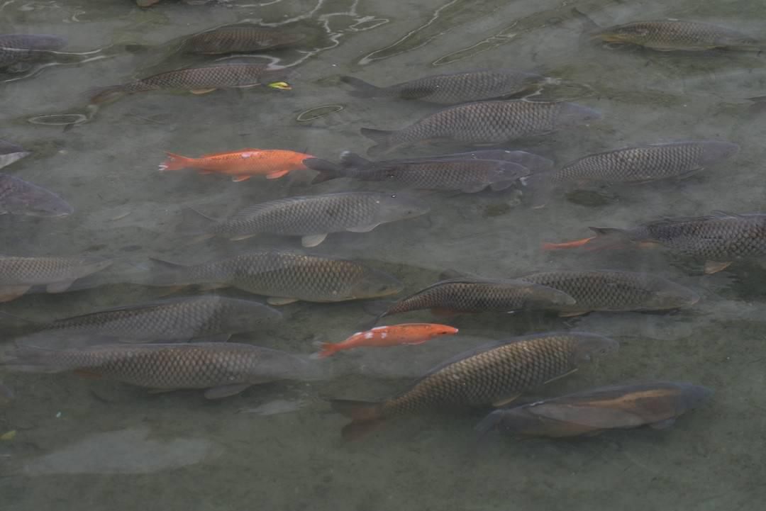 王艳锋家鱼池里的鱼。(肖洋 摄)