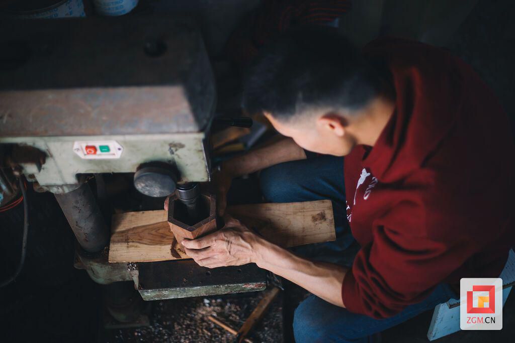 六块木块组成一个琴筒,工序繁多。记者 宋姿熠 摄