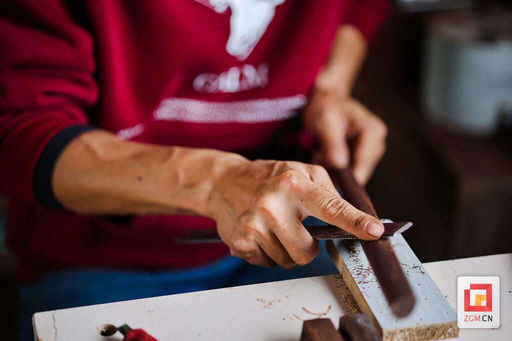 从近乎天然的原材料到制成所见的二胡,这中间的大部分工序都由罗朝宾纯手工完成。经过数道工序的磨砺,严丝合缝的组装,以及后续上弦、调音、再打磨、检查等,最终才能做出一把音色悠扬的二胡。也正因如此,二胡的制作周期较长。