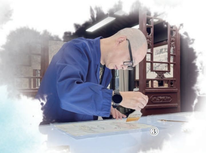 三苏祠博物馆书画修复师刘良勇在修复古画。人民日报记者 游 仪摄
