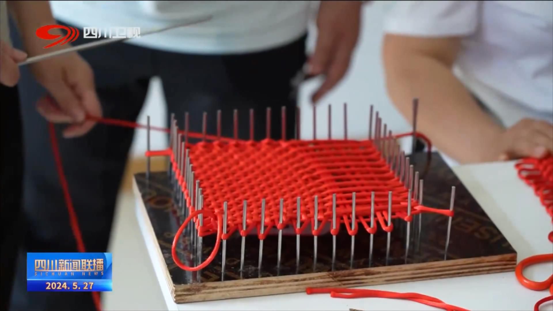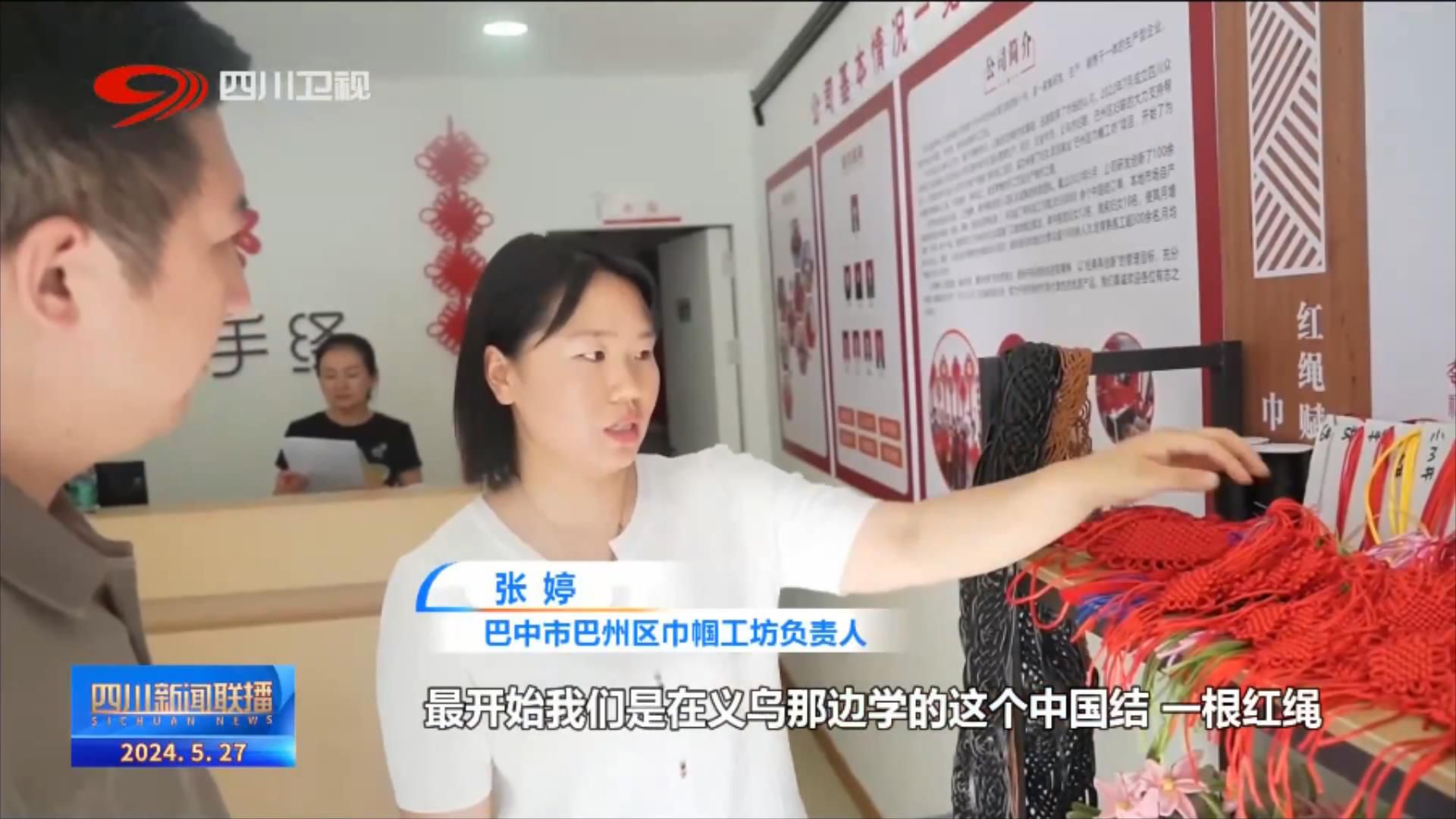 巴中市巴州区巾帼工坊负责人 张婷:最开始是在义乌那边学的这个中国结,一根红绳,现在延伸到了5个项目,我们的流苏、线勾、腰带,包括串珠。