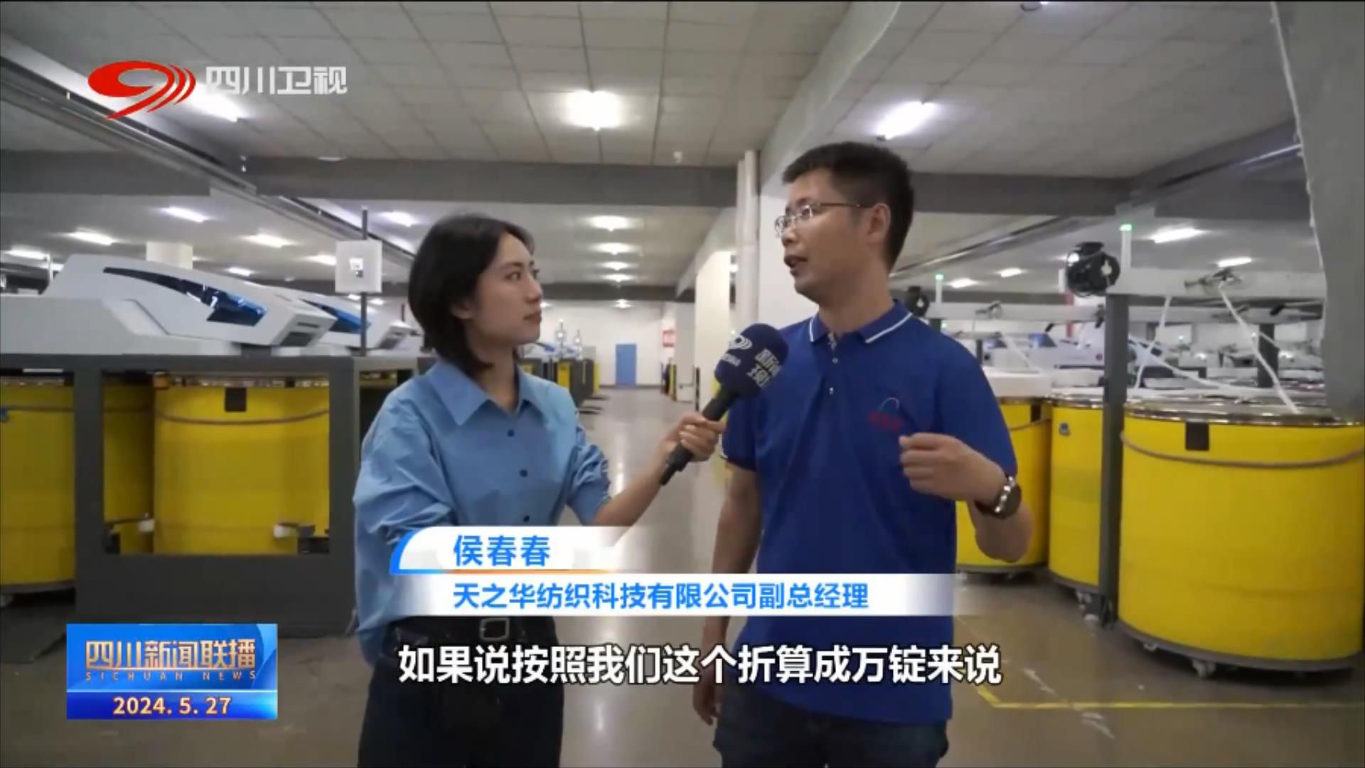 天之华纺织科技有限公司副总经理 侯春春:如果说按照我们这个折算成万锭来说,我们现在的万锭用工人数大概7-8人,以前传统的可能要30-40人。