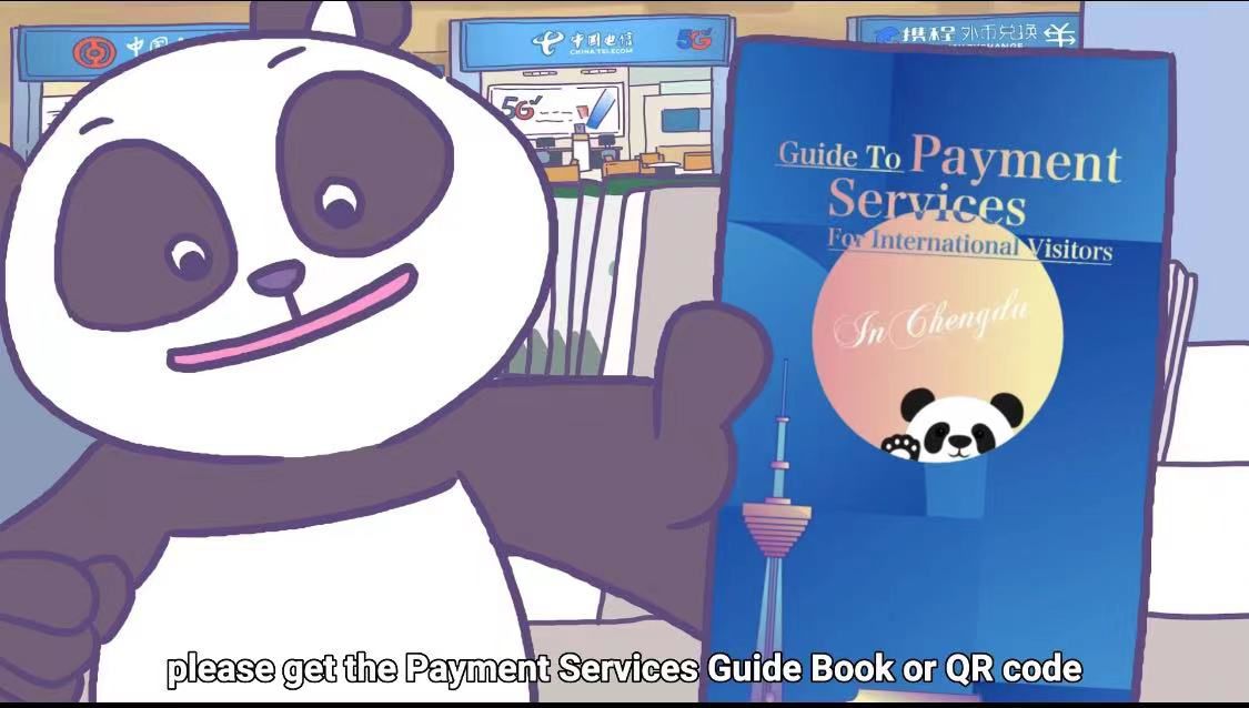 5月27日起,《成都支付服务》动画短片在川航窄体机执飞的国际国内航线上正式上线播放。短片向即将抵蓉的外籍游客介绍了境外银行卡刷卡、移动支付、人民币现金、数字人民币、境内银行卡刷卡五种支付方式,并指引他们前往成都天府国际机场境外来宾支付服务中心获取《外籍来蓉人员消费支付服务指引》或者相应二维码。