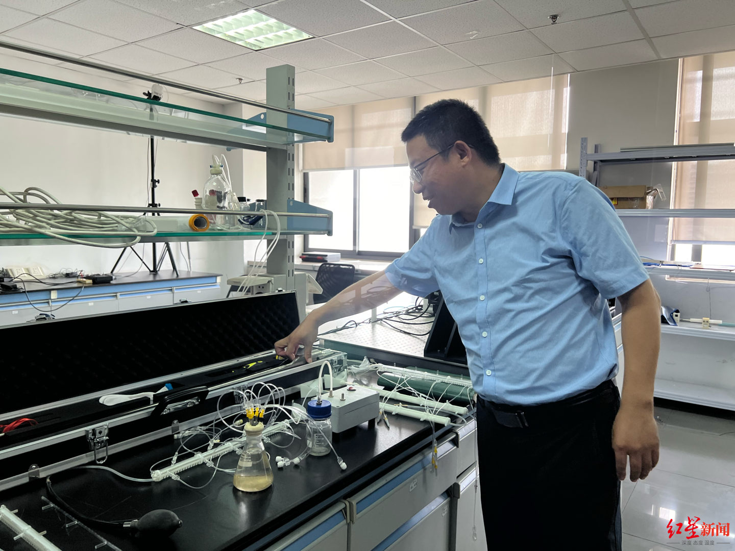 除了对植物根系成像设备进行研究,蒋海波还为科研人员探索根系的“微观世界”提供了植物根系全生命周期无损取样技术。走进蒋海波的实验室,只见桌上陈列了一排透明“管道”,蒋海波介绍,“将这些全生命周期无损取样装置在育种前进行布设,农作物的根系大概率会生长进‘管道’,通过特定的技术方式,我们就能将根际微生物、分泌物等完整地取出。”