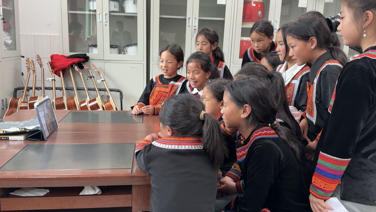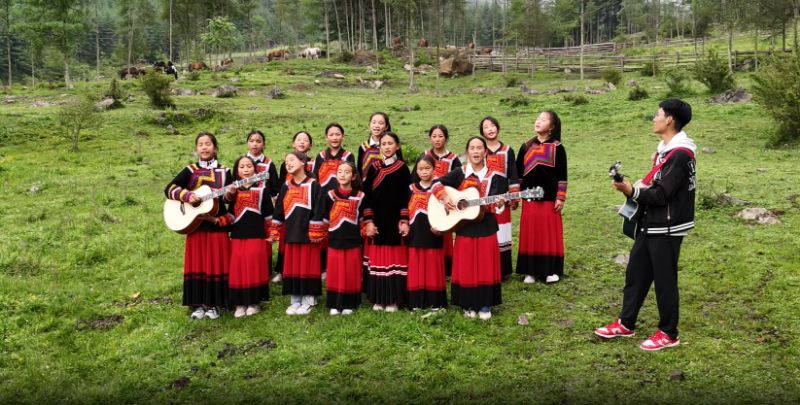 峨边县位于乐山市西南处,与马边县、凉山州雷波县、宜宾市屏山县统称为四川小凉山。勒乌乡地处大小凉山交界处,是峨边县最偏远的乡镇,“她们成天围着我,让我弹吉他、唱歌”,邱卡华告诉记者,给小妞妞们看了大凉山“妞妞合唱团”的视频后,孩子们就一发不可收拾地爱上了音乐。于是,学校的这支合唱团成立了。
