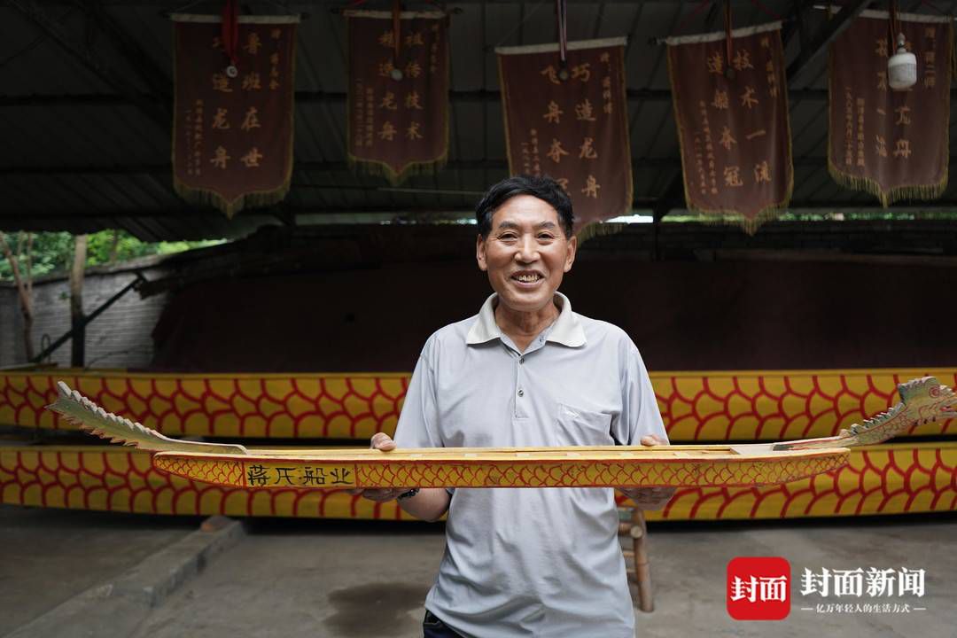 “杉木轻、耐水性强,最合适做龙舟”“新船下水前要打油,若想延长木船使用寿命,每年还要打一次,好的木船能用几十年。”当介绍起自己亲手造出来的龙舟时,蒋志全有说不完的话,从选材到改料,再到船身结构以及不同船身的特点都讲得十分详尽。