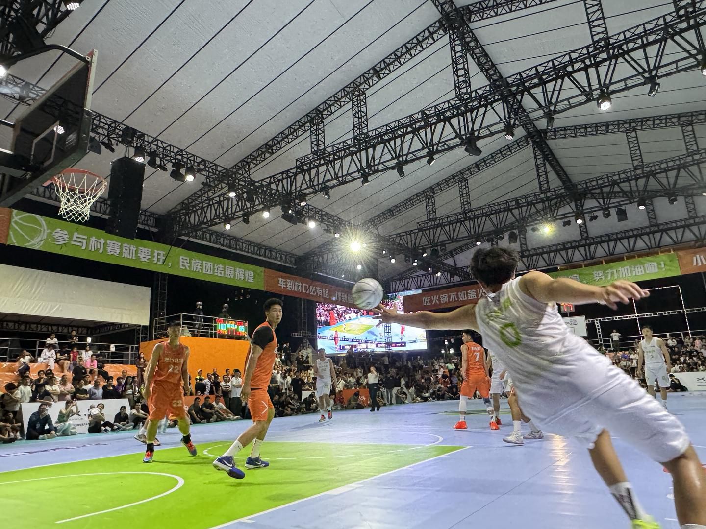 10日晚,决赛之夜,四川宜宾僰文化公园广场篮球场内,现场座无虚席,热情的氛围让人热血沸腾,助威声此起彼伏,为赛场增添了无尽活力。7点30分,“村BA”季军争夺赛首先打响。