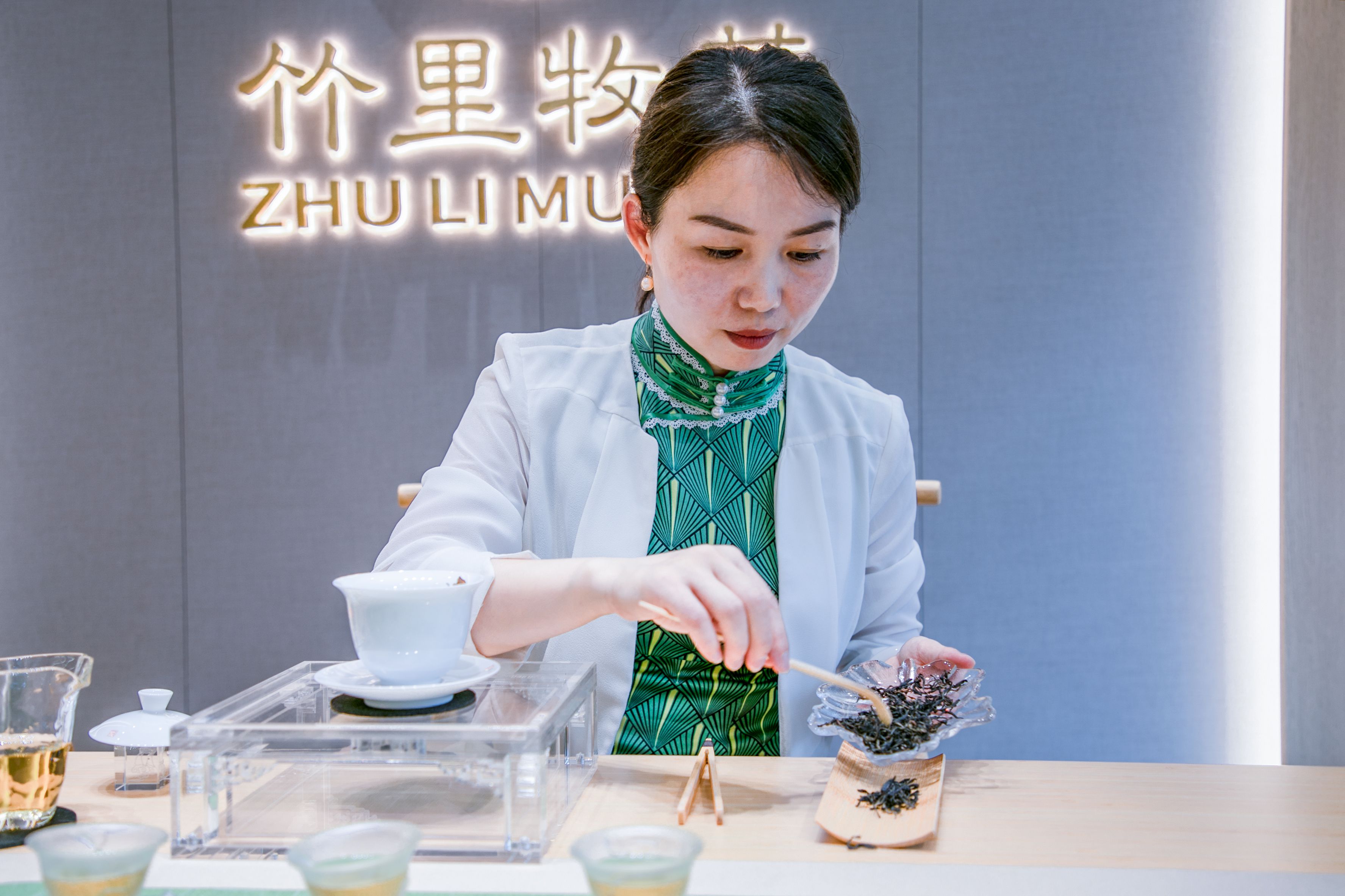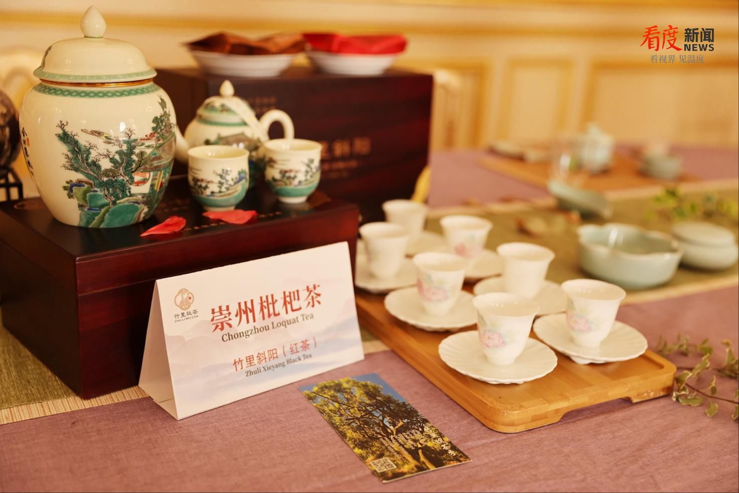 据成都市枇杷茶技艺非遗传承人、成都工匠马艳介绍,由竹里牧茶公司生产的崇州枇杷茶运用非遗技艺匠心制作,已推出竹里清风(绿茶)、竹里月光(白茶)、竹里斜阳(红茶)、盏中金(黑茶)等系列产品,并融入道明竹编,打造“双地标双非遗”品牌产品。而此次在巴黎亮相的枇杷茶正是竹里斜阳(红茶)。