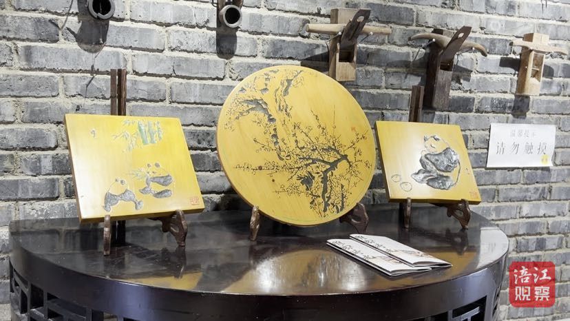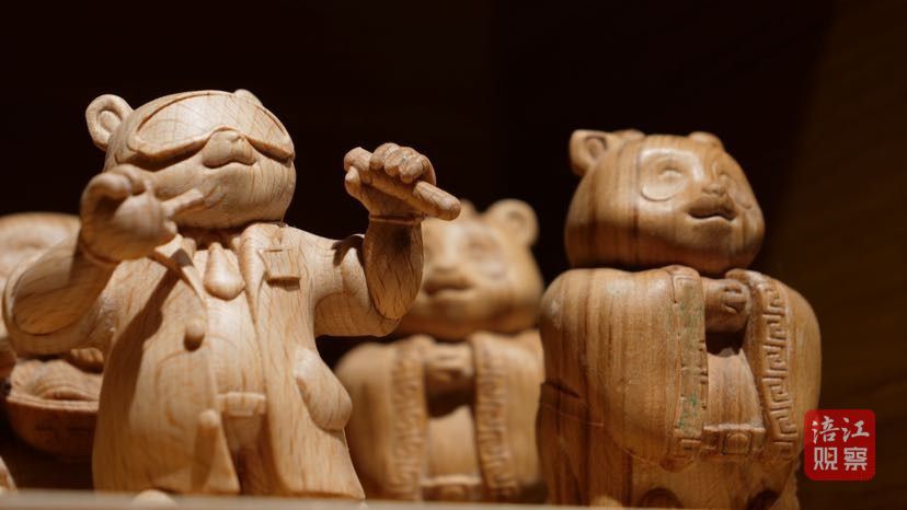 无论是笔走龙蛇的匾额、楹联,还是古色古香的十二金钗木刻图,亦或是惟妙惟肖的花鸟鱼虫雕刻摆件……站在这些木刻作品前,她心中充满敬意和感慨。