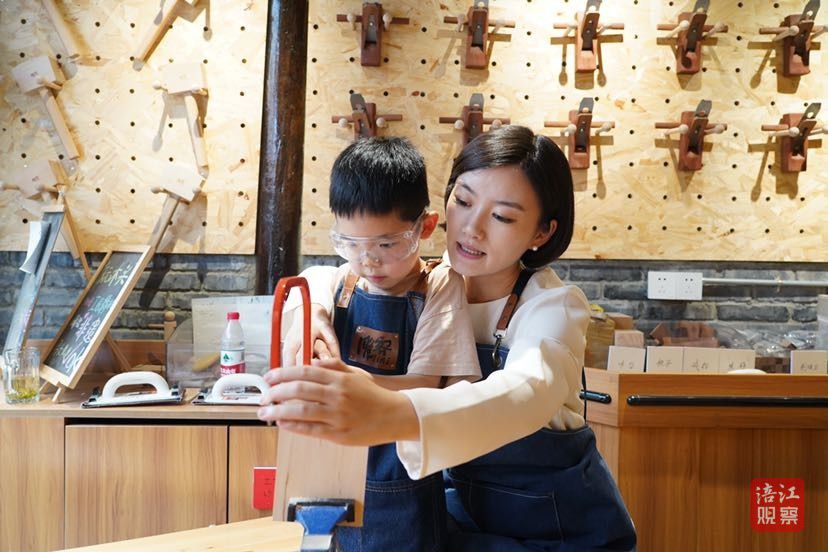 老年人在木工坊寻找手作时代的回忆,小孩子在这里摸索到动手的乐趣,年轻的父母也感叹:“把孩子放在这里‘学手艺’,比在家刷手机、玩游戏有意义。”