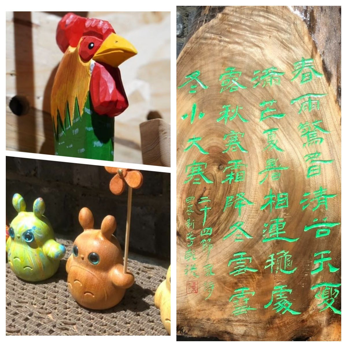 老木桌上的原木切片,被刻印上二十四节气歌;