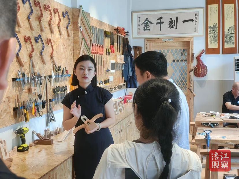2023年8月,“雕客时光非遗木工坊”开门迎客。同时,她还将自己的木工坊“搬”进了学校课堂,让孩子们能在书本之外,找到传统手工艺带给自己的乐趣。